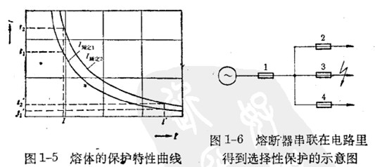 如图1-6所示为两种不同额定电流熔体的保护特性曲线。